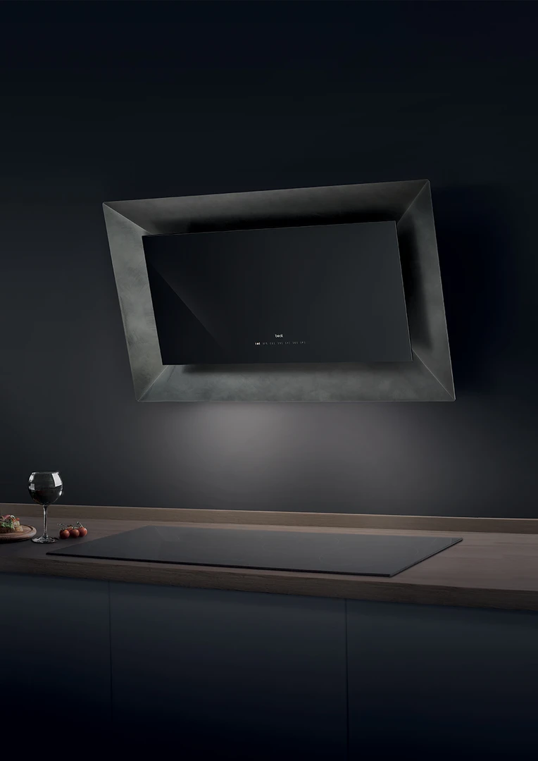 La strategia visiva del progetto si è sviluppata a partire da un set costruito all’interno del nostro studio Cyclorama, dove sono stati allestiti pareti, cucina e pavimento. Questa cura nell’allestimento ha permesso di creare una narrazione fotografica immersiva, capace di trasmettere un’atmosfera suggestiva, elegante e coerente con l’identità del prodotto. L’approccio scelto mira a valorizzare non solo l’estetica della cappa “Frame”, ma anche il suo valore funzionale, raccontandola come un elemento prezioso all’interno della cucina in grado di integrarsi armoniosamente con l’ambiente domestico.
